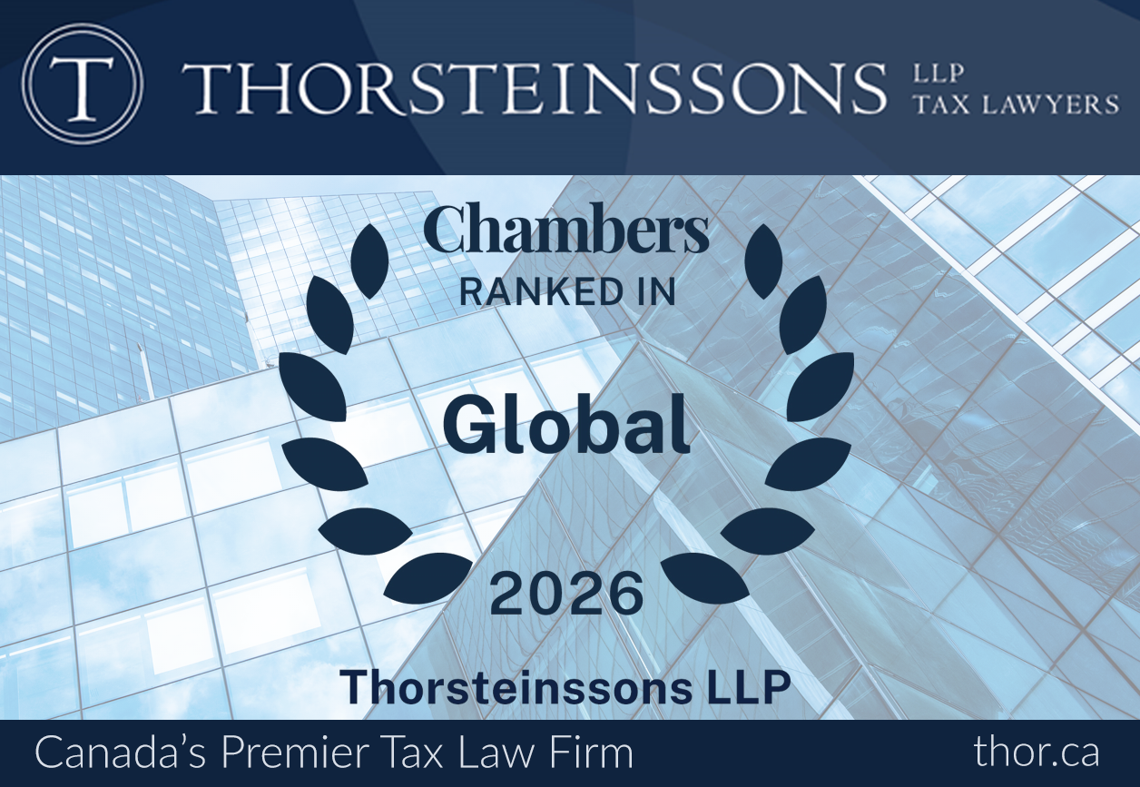 Chambers Global 2023 has recognized Paul Gibney and Michael Colborne as ranked lawyers in the Tax category. Matthew Williams has been recognized as a ranked lawyer in Tax: Litigation. Thorsteinssons LLP has been recognized as a Leading Firm.