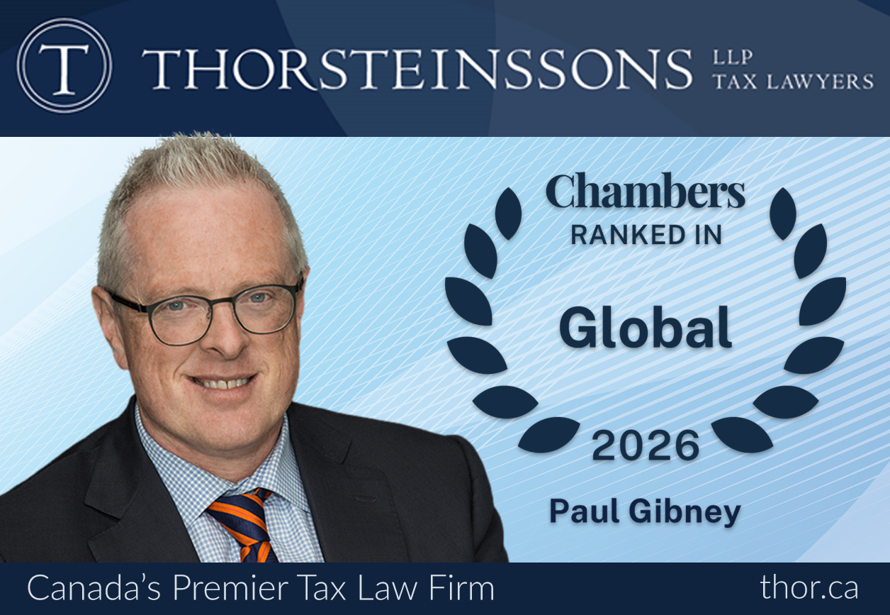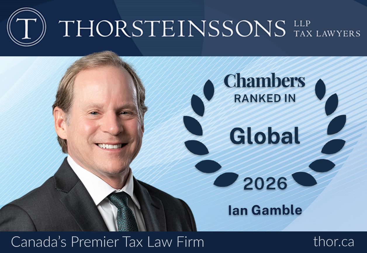 Chambers Global 2025 has recognized Paul Gibney and Ian Gamble as ranked lawyers in the Tax category. Matthew Williams has been recognized as a Band 1 ranked lawyer in Tax: Litigation. Thorsteinssons LLP has been recognized as a Leading Firm in Tax.